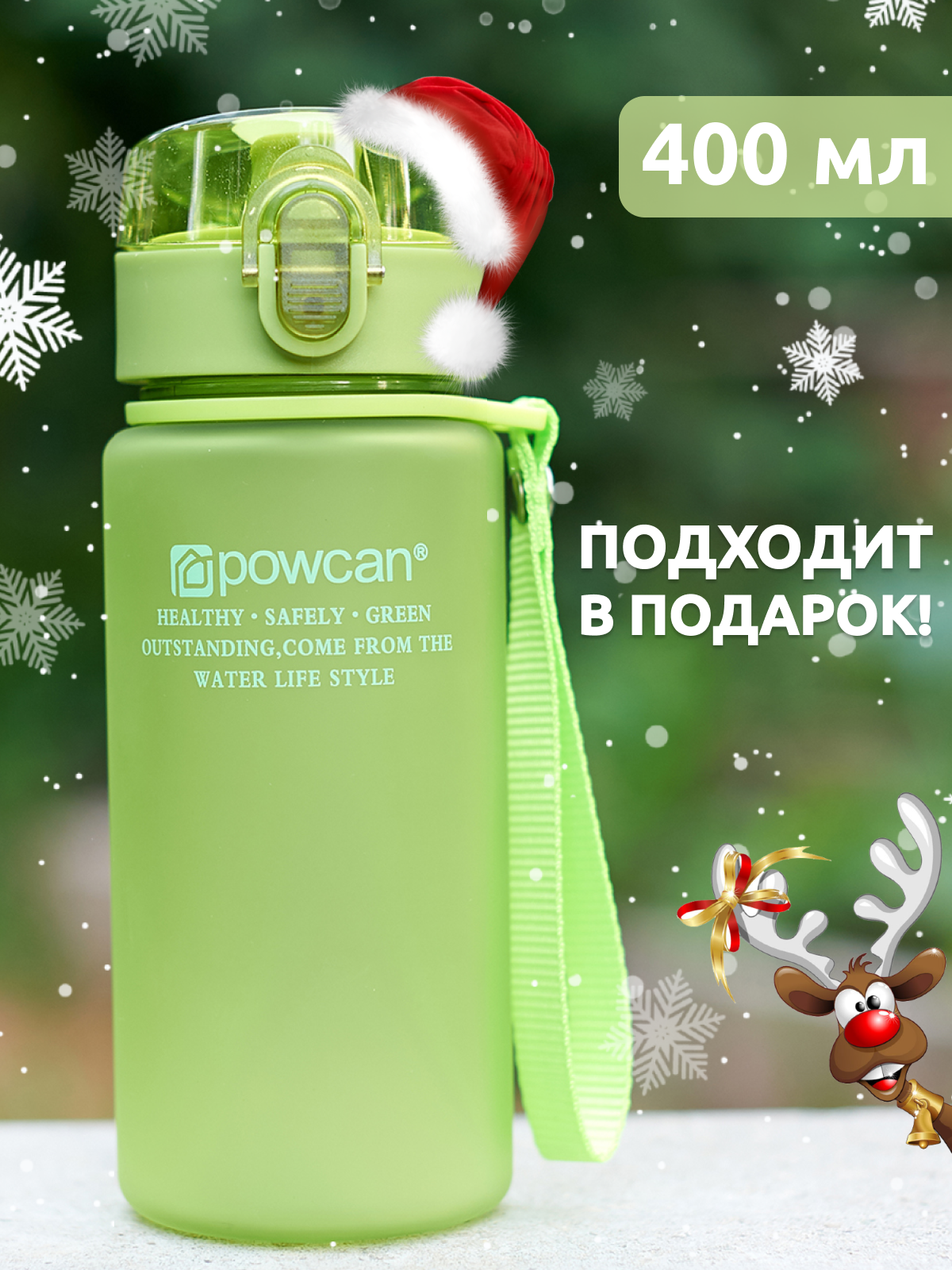 Бутылка для воды POWCAN - green 400 мл. глянцевая