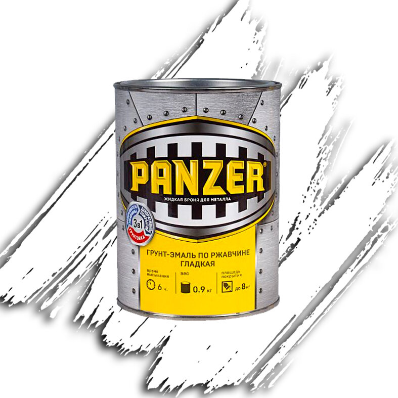 Грунт- эмаль ПО ржавчине гладкая "PANZER" БЕЛАЯ 0,9 КГ, полуглянцевая, 1ШТ, жестяная банка