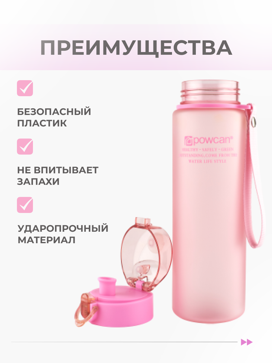 Купить Бутылка для воды POWCAN - pink 560 мл. матовая