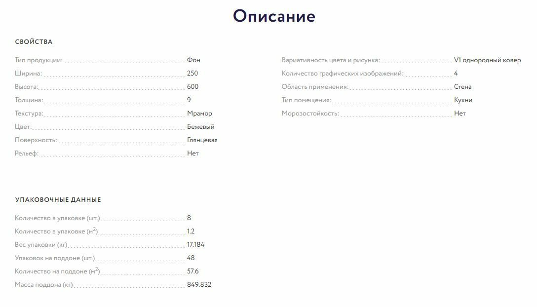 | Дополнительная информация | Palladio 25х60 |