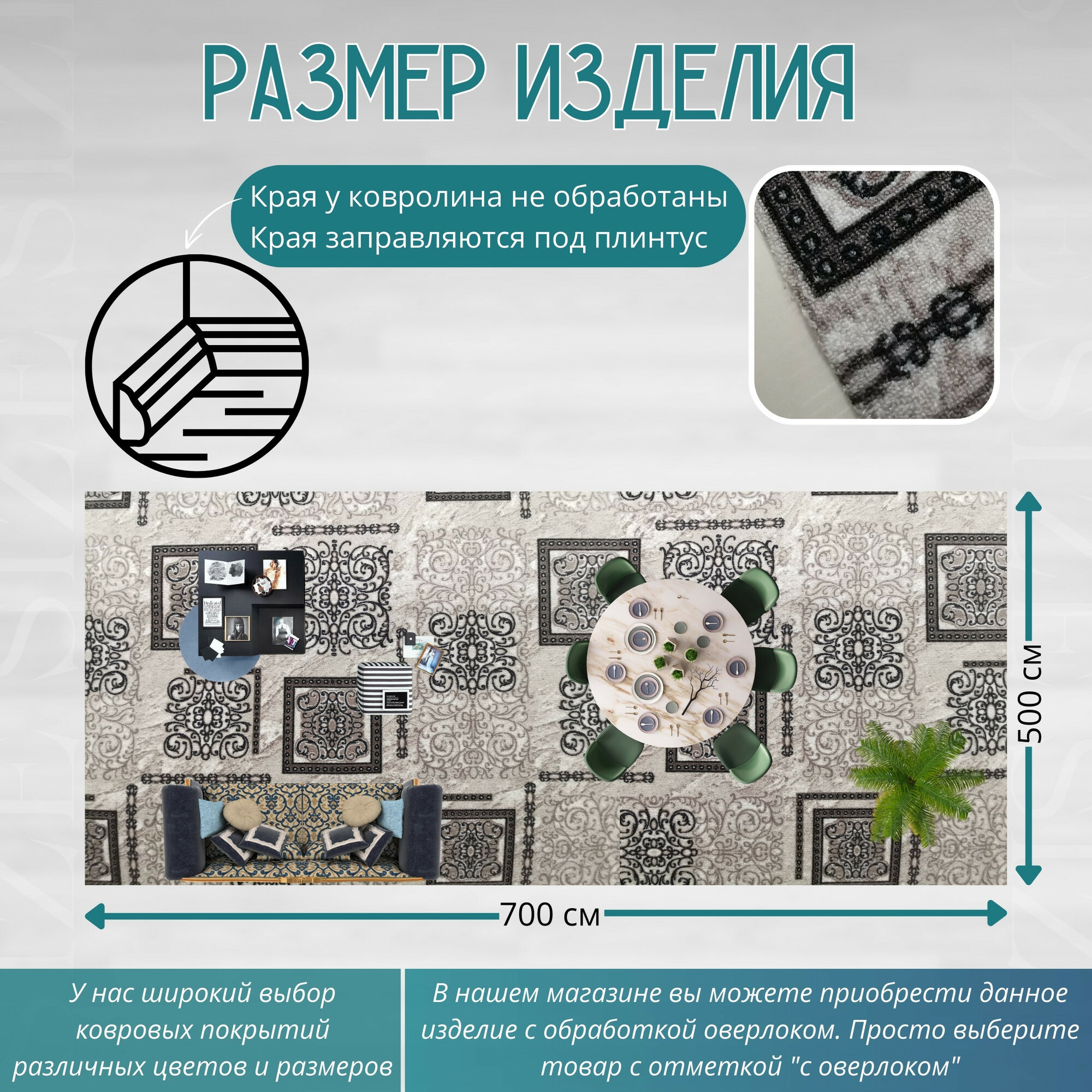 СохранитьКовролин метражом 5х7 м, без ворса "Узор серо-коричневый" без оверлока интересное: