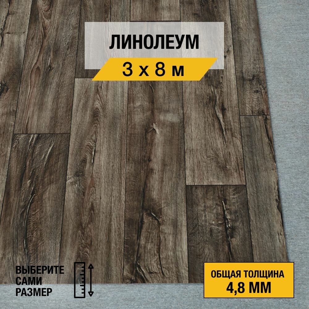 Линолеум напольный на отрез iDEAL, коллекции Ultra "Cracked oak 2". Полукоммерческий линолеум 2,5х8м. для пола в рулоне 23,32 класса
