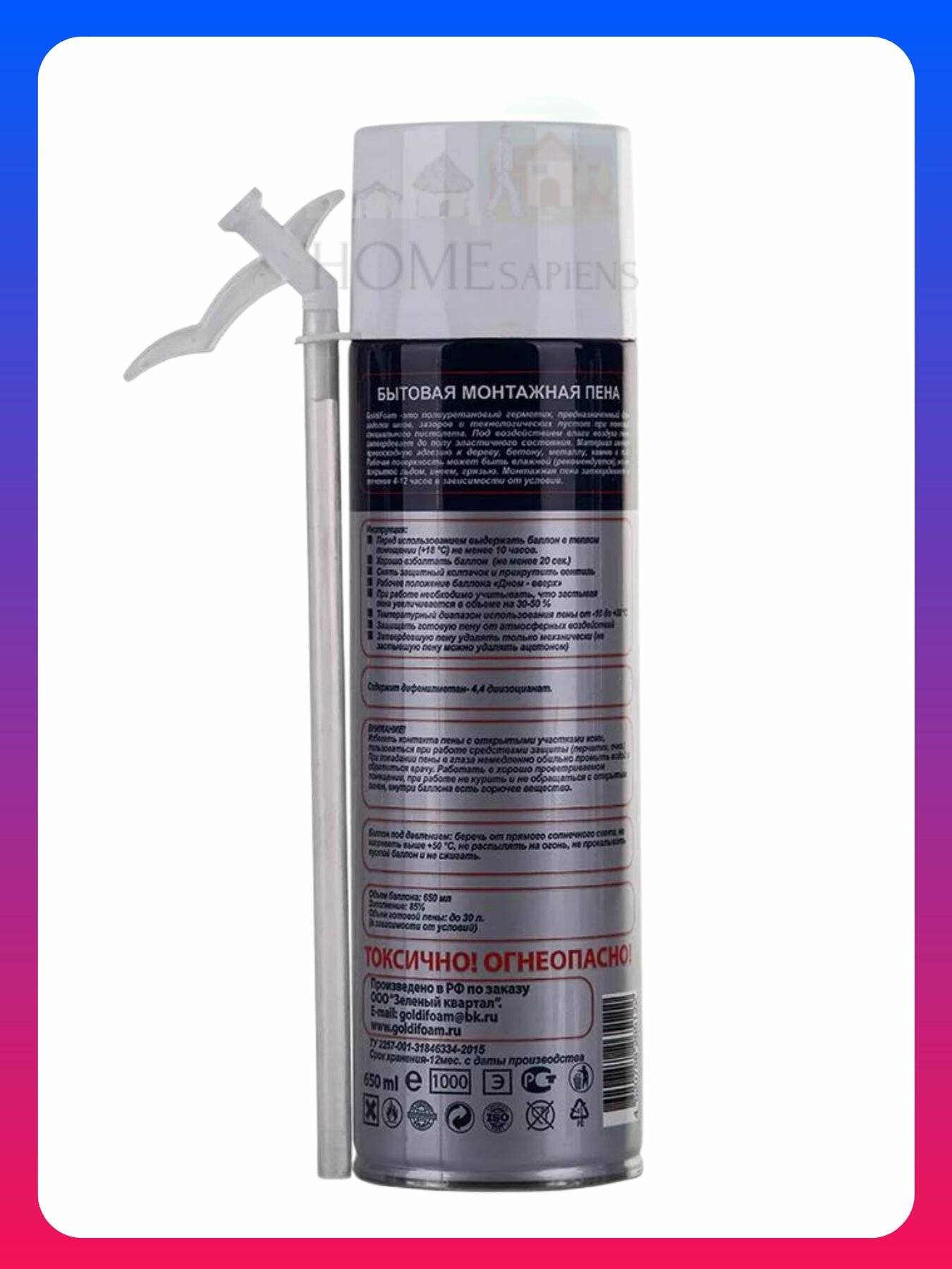 Пена монтажная бытовая с трубочкой GoldiFoam MINI 650 мл. профессиональная всесезонная с трубкой