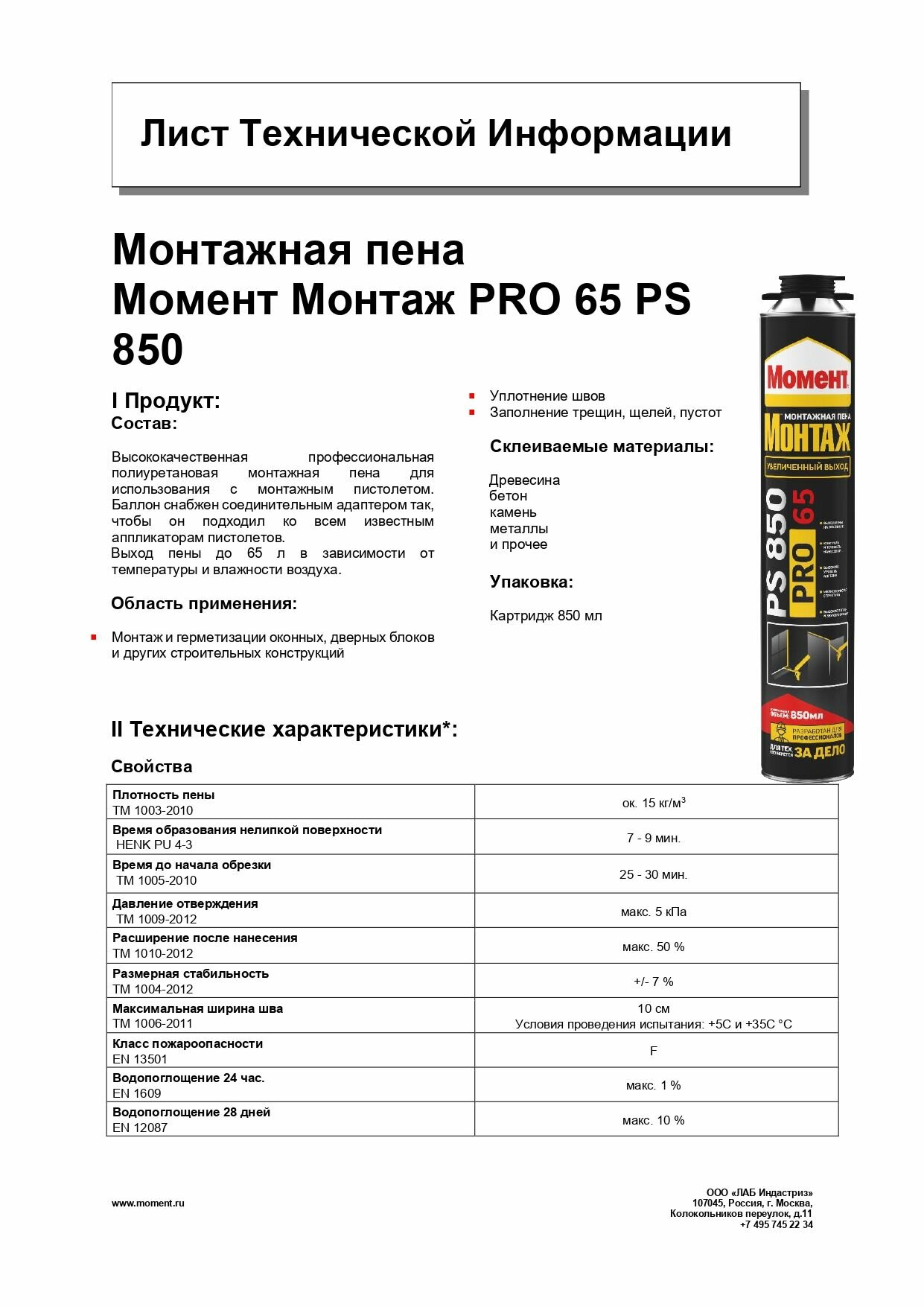 Пена профессиональная Момент Монтаж PRO 65 PS 850 мл интересное: