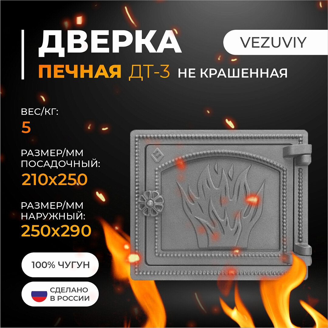 | Подробная комплектация | Дверка ВЕЗУВИЙ печная ДТ-3 (не крашенная) 1 шт. |