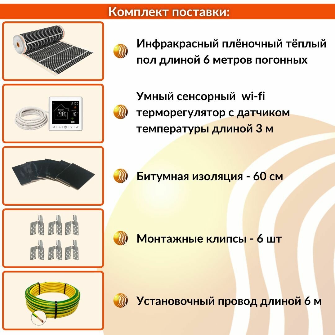 Купить Пленочный электрический теплый пол под ламинат / линолеум / паркет 3м.кв. с умным wi-fi терморегулятором. Инфракрасная пленка 3 м2