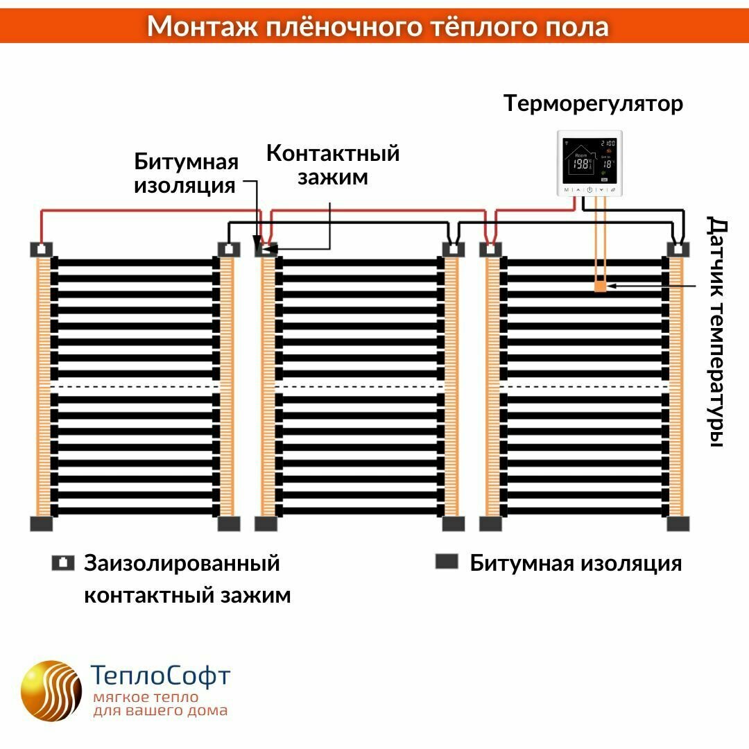 Инфракрасный пленочный теплый пол Теплософт 14 м², 3080 Вт с электронным терморегулятором