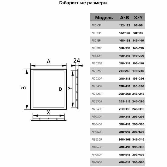 Л1520Р, Люк-дверца ревизионная 168х218 с фланцем 146х196 с ручкой АБС