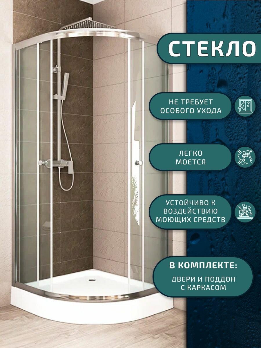 Душевой уголок BAU Stil Hit с поддоном 90x90х195, прозрачное закаленное стекло, хромированный профиль