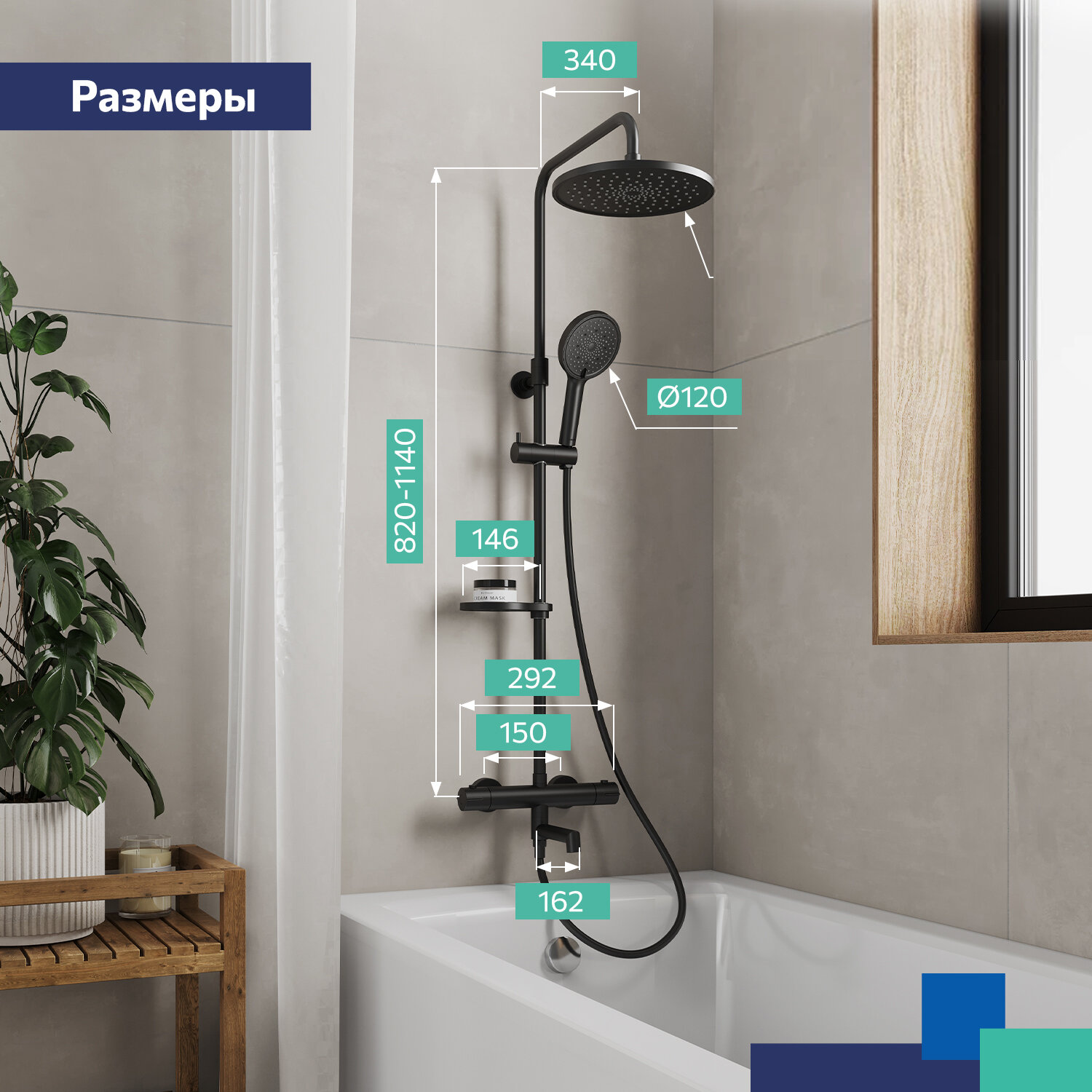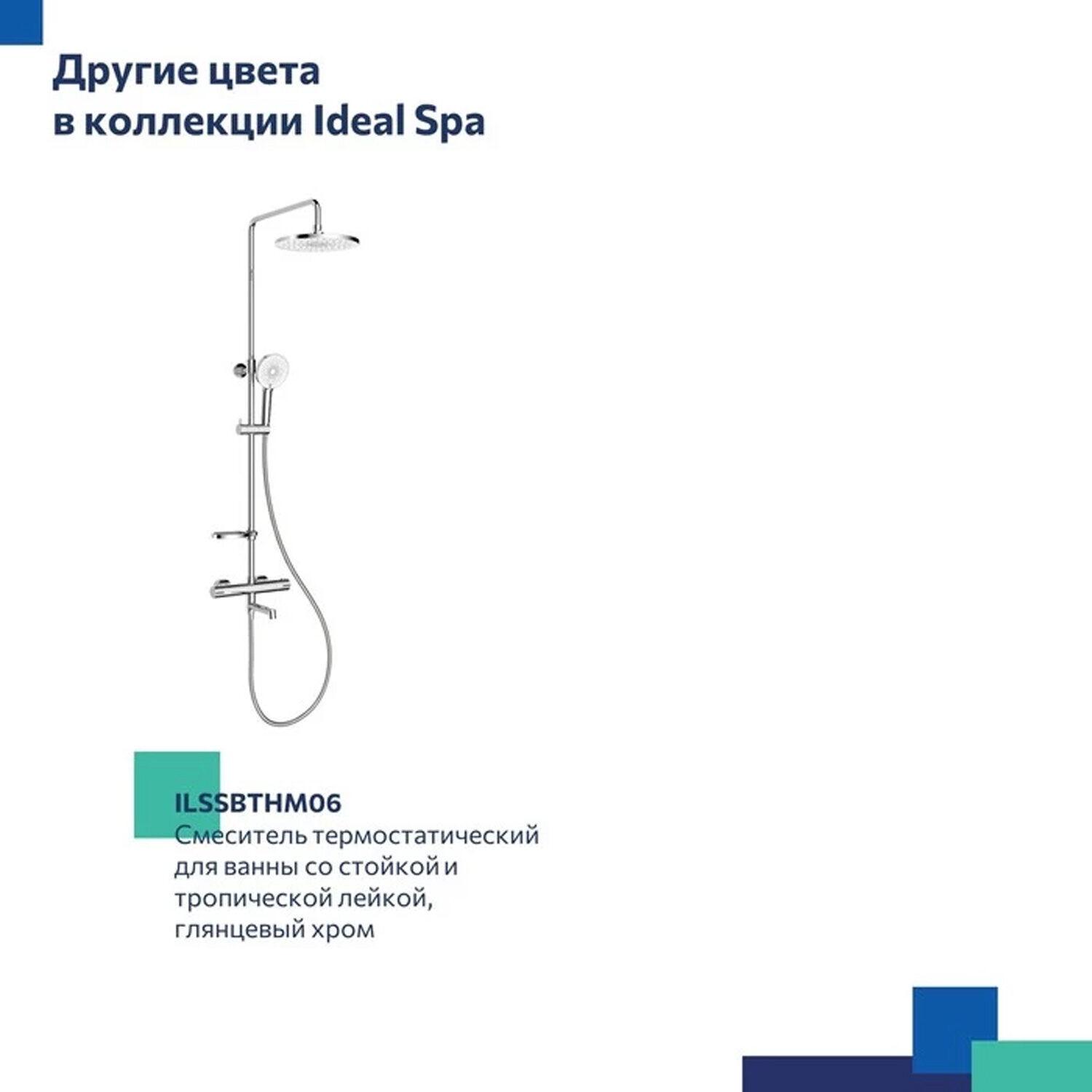 | Дополнительная информация | Термостатический картридж; Термостатический картриджэксцентрики с отражателями, комплект уплотнителей, ручная лейка для душа, верхняя лейка для душа, шланг для душа 150 см. |