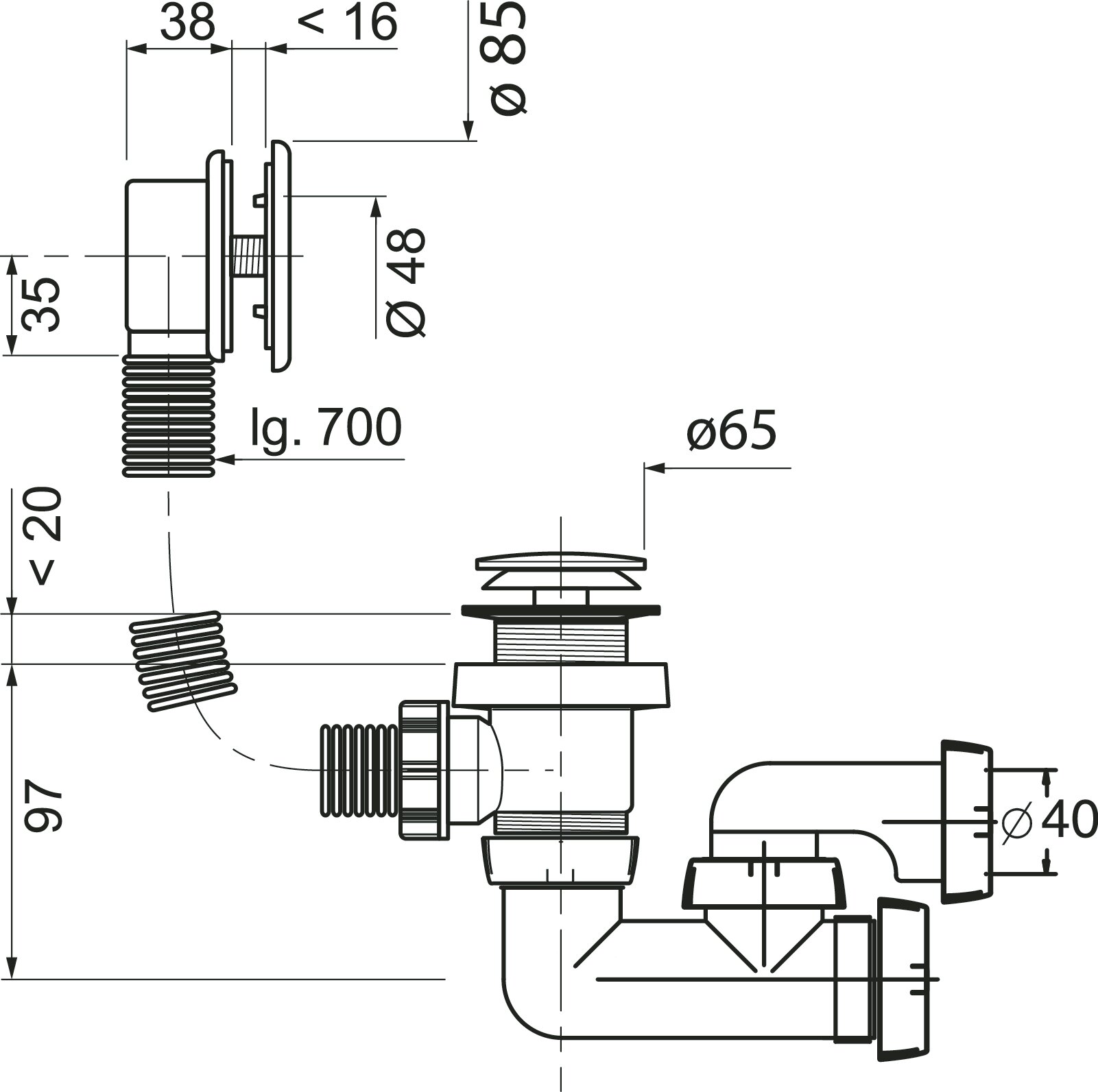 Слив-перелив для ванной Wirquin клик клак, автомат, L700 мм, с жестким патрубком