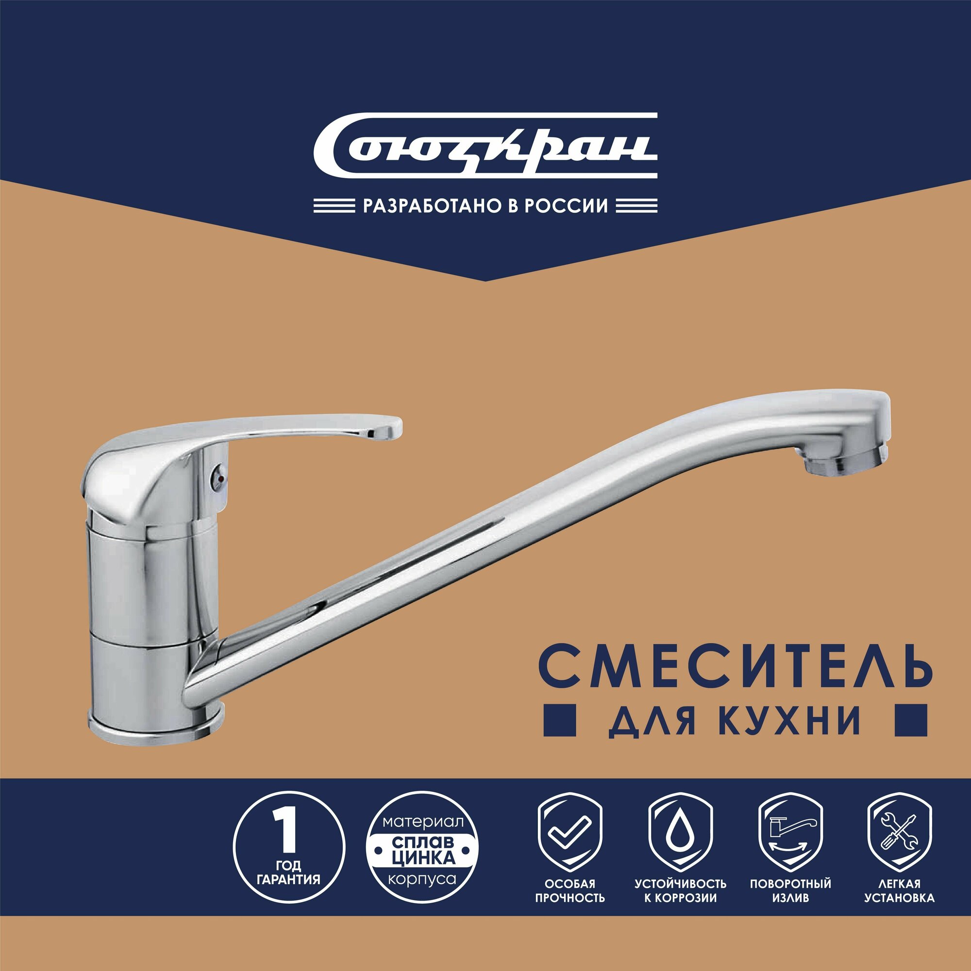 Смеситель для кухни низкий излив 25 см СоюзКран, однорычажный, кран для раковины, мойки, умывальника интересное:
