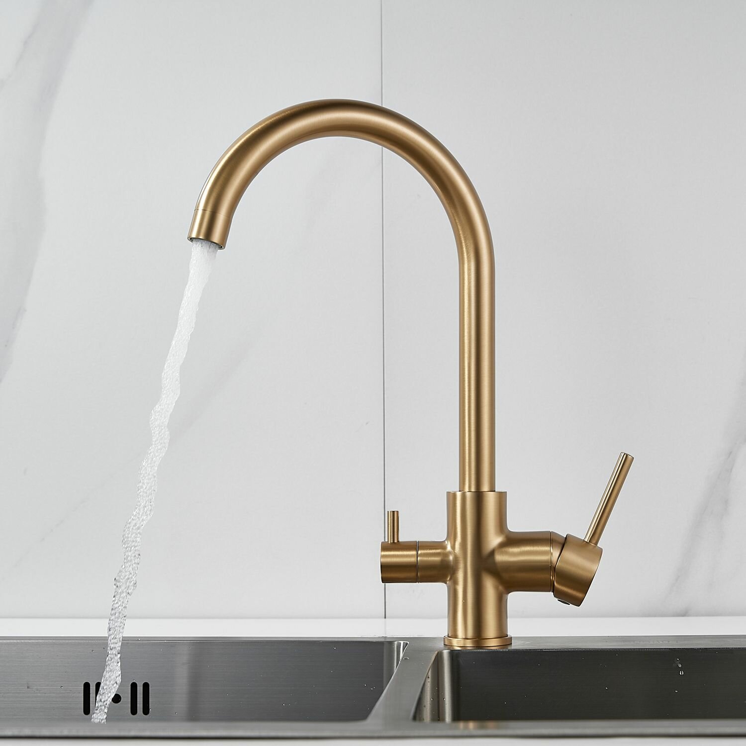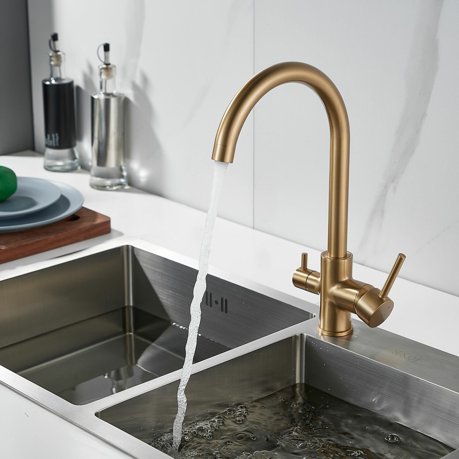 SHEVANIK" Смеситель для кухни с подключением фильтра питьевой воды, золото сатин S128G