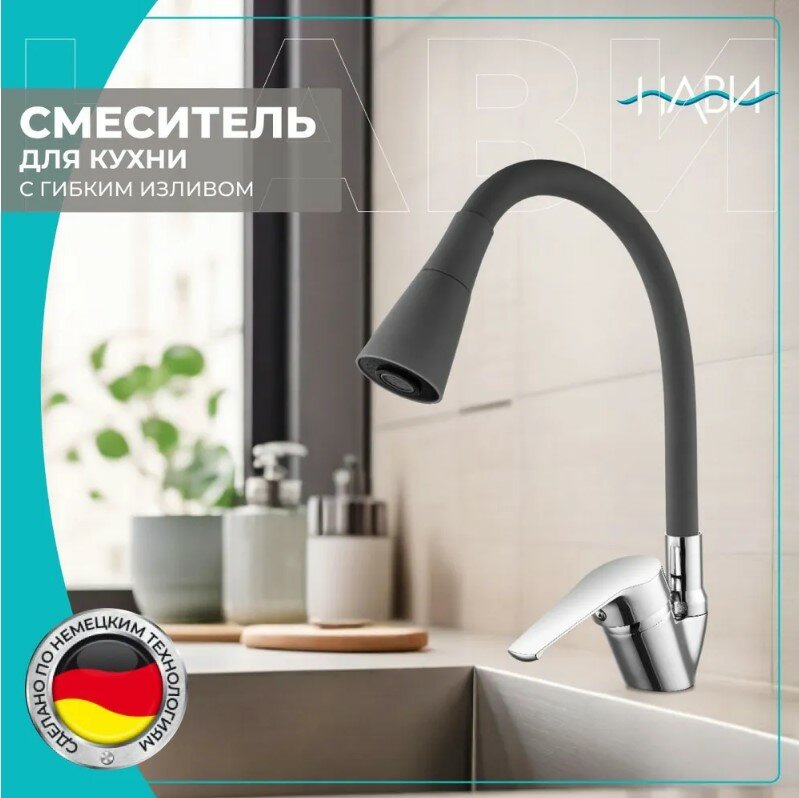 СохранитьСмеситель для кухни с гибким изливом Dionis DNE8-LG-203, цвет: серый. Без гибкой подводки. интересное: