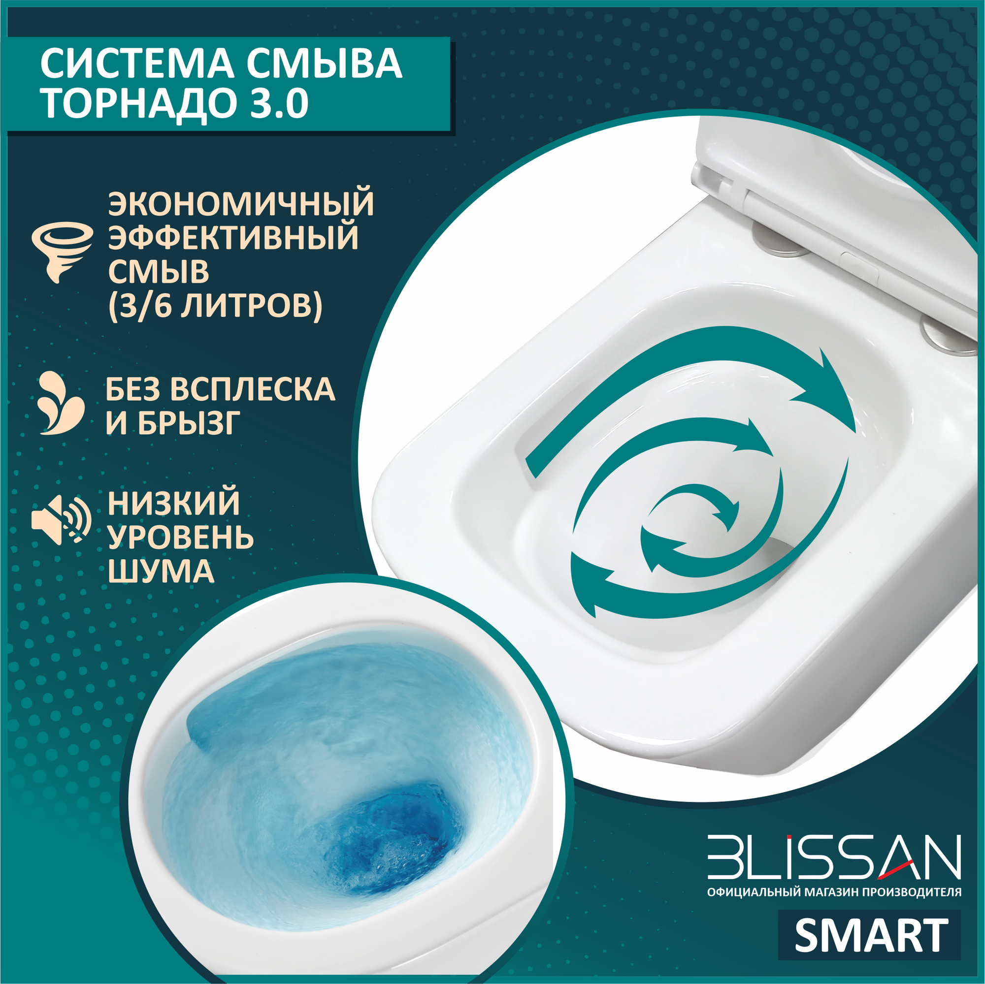СохранитьУнитаз напольный безободковый BLISSAN Smart Rimless Торнадо 3.0 с сиденьем микролифт, быстросъемное интересное: