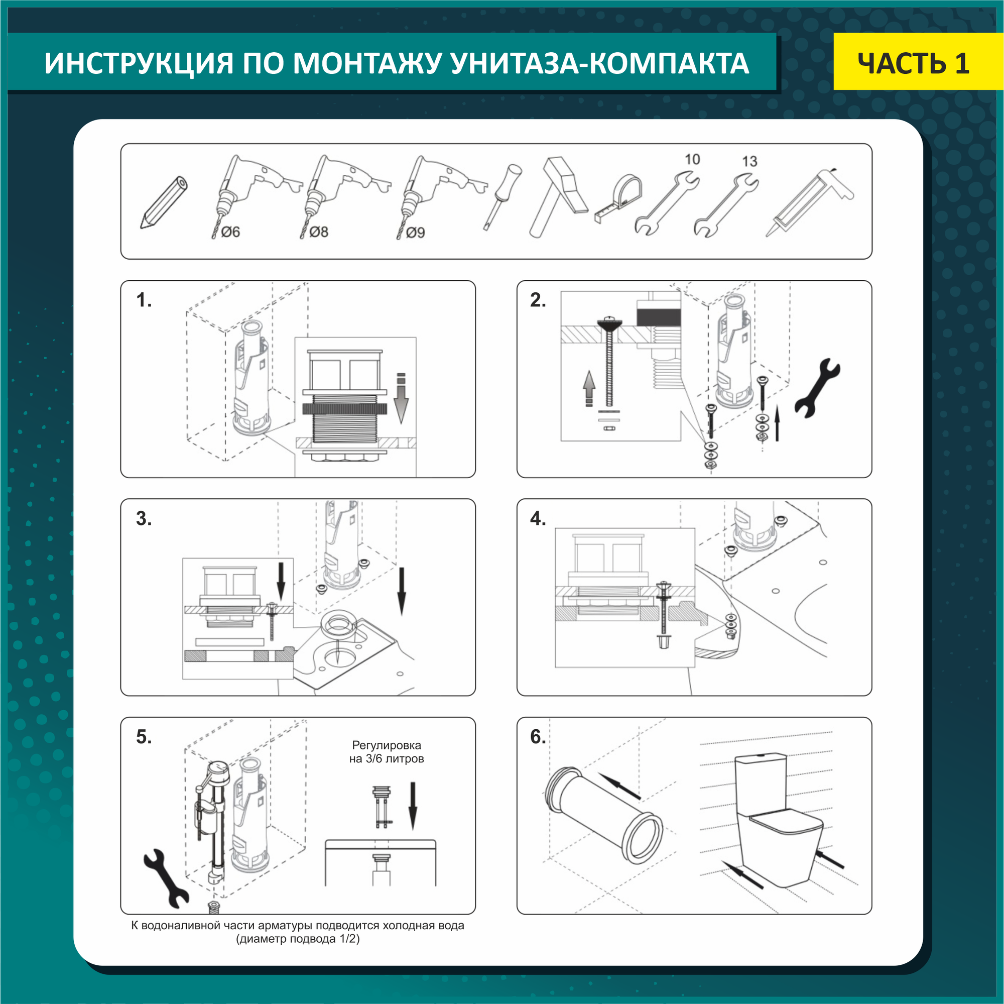 | Комплектация | бачок / монтажный набор креплений / сиденье |