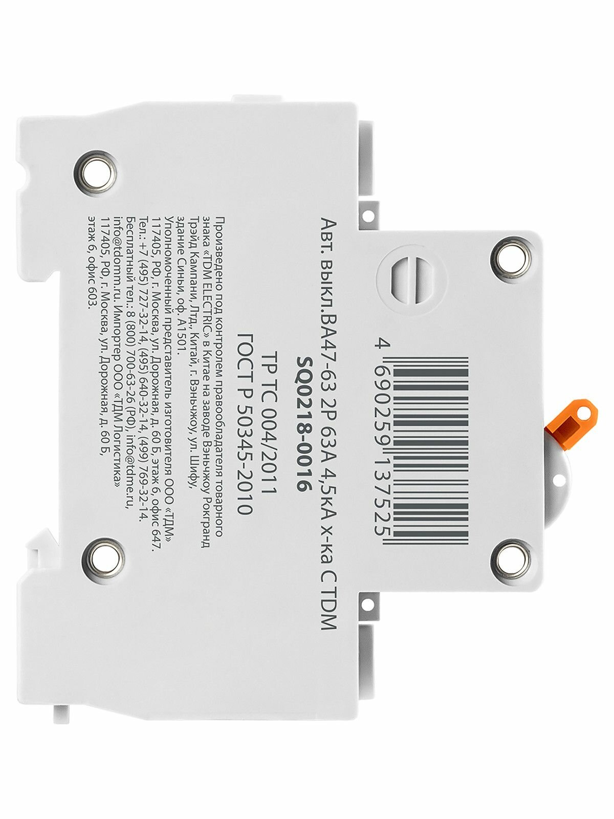Автоматический выключатель ВА47-63 2Р 63А 4,5кА х-ка С TDM SQ0218-0016