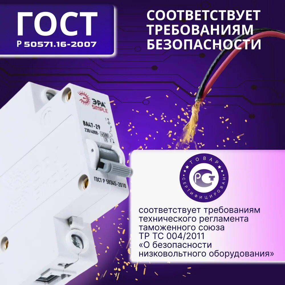 Выключатель автоматический модульный 1п C 6А 4.5кА ВА 47-29 SIMPLE-mod-01, ЭРА Б0039218 (1 шт.)