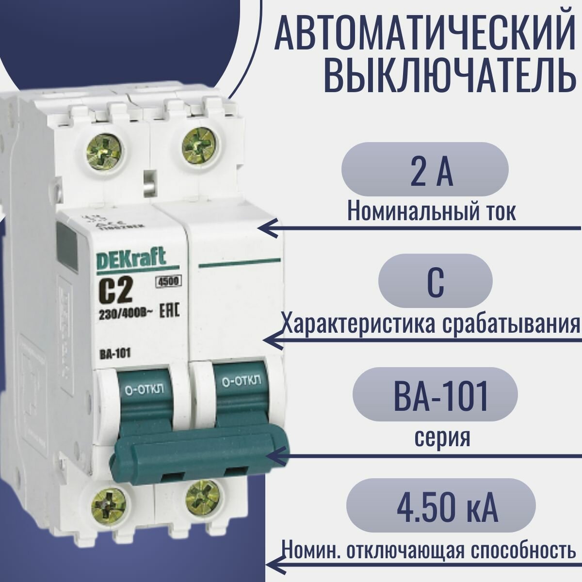 Купить DEKraft Автоматический выключатель 2Р 2А х-ка C ВА-101 4,5кА