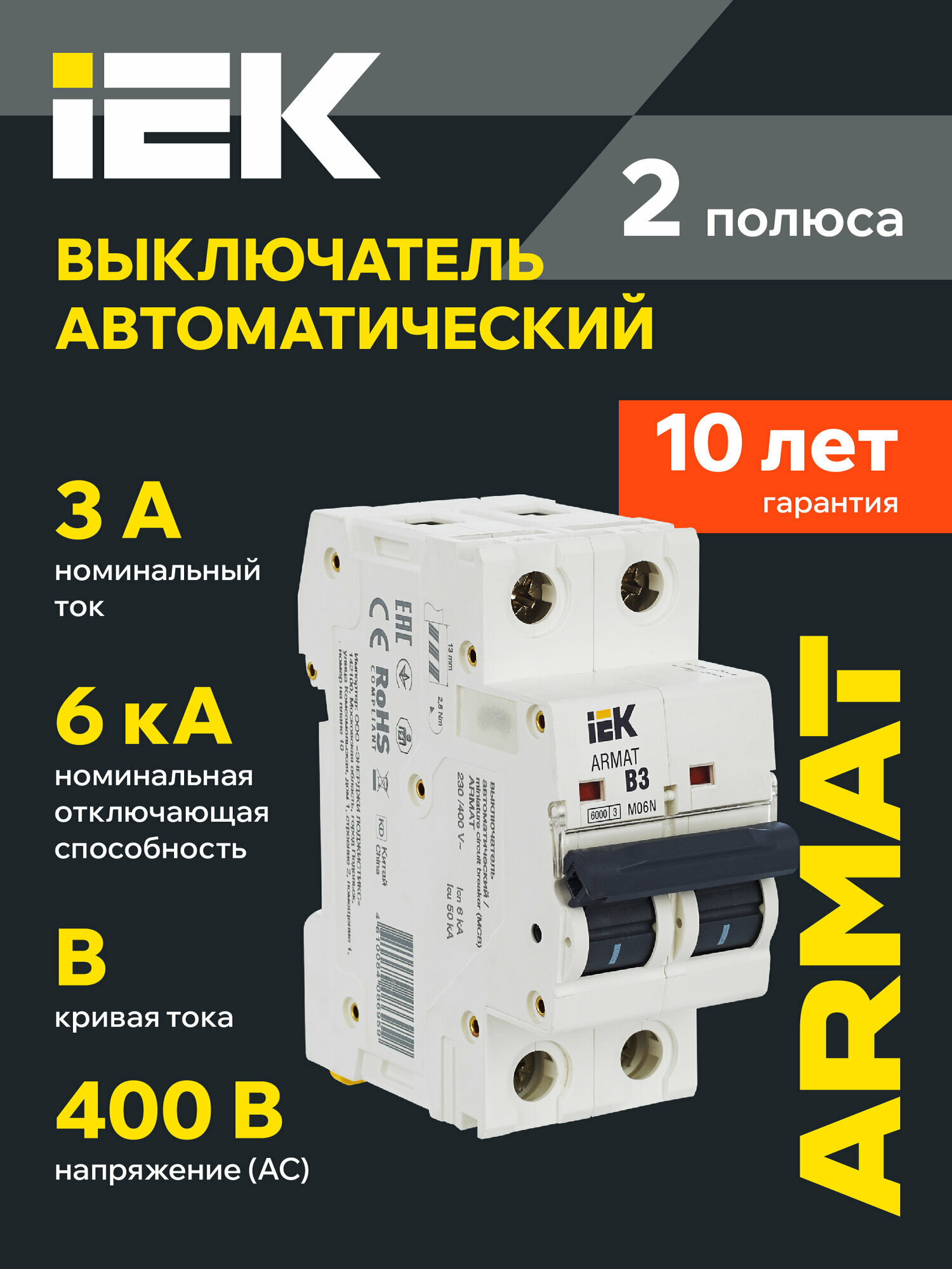 ARMAT Выключатель автоматический двухполюсный B 3А M06N , IEK AR-M06N-2-B003 (1 шт.)