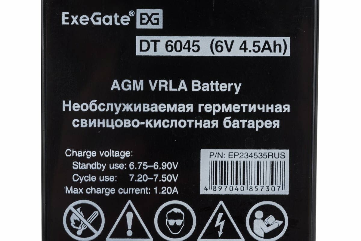 ExeGate АКБ DT 6045 6V 4.5Ah, клеммы F1 234535