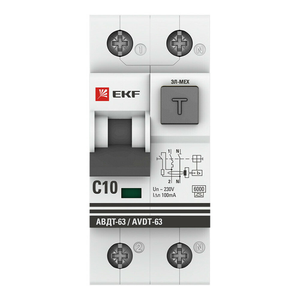 Купить Дифференциальный автомат АВДТ-63 10А-100мА (характеристика C, эл-мех, тип А) 6кА EKF PROxima