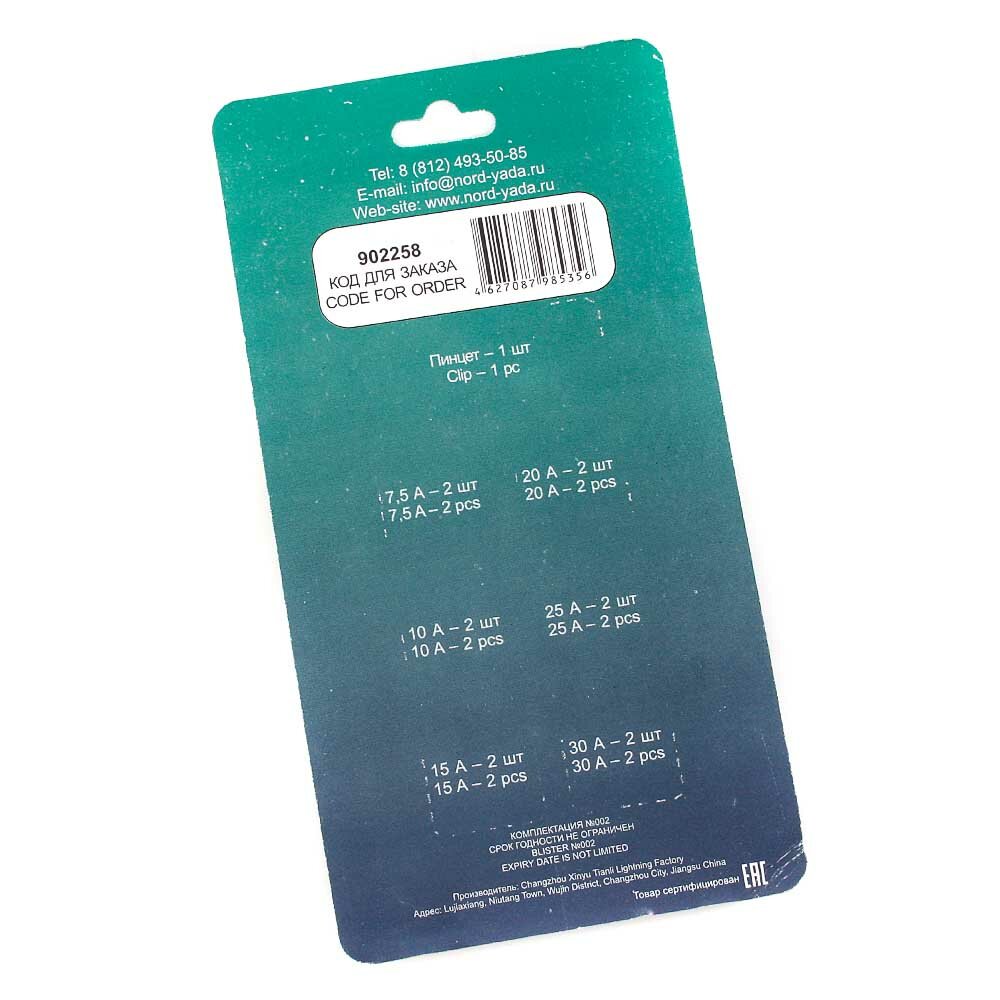 Предохранители флажковые 2х7.5А+2х10А+2х15А+2х20А+2х25А+2х30A=12 шт. с пинцетом Nord YADA 902258