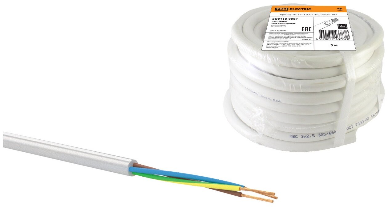 Провод ПВС 3х1,5 ГОСТ, белый, TDM (Артикул: 4100013303) интересное: