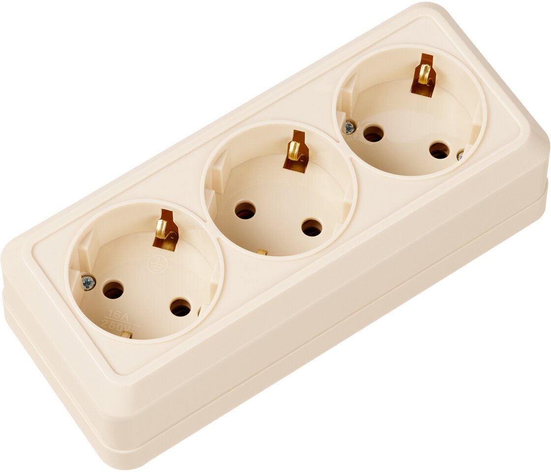 Розетка 3-х местная горизонтальная 2П+3 открытой установки IP20 16A сл. кость "Ладога" TDM