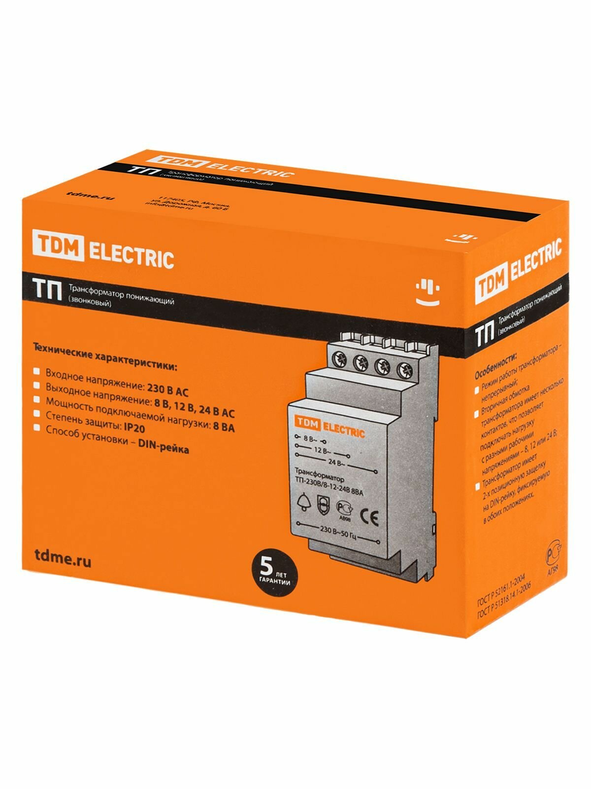 Трансформатор понижающий (звонковый) ТП-230В/8-12-24В 8ВА DIN-рейка TDM SQ0225-0001 (1 шт.) интересное: