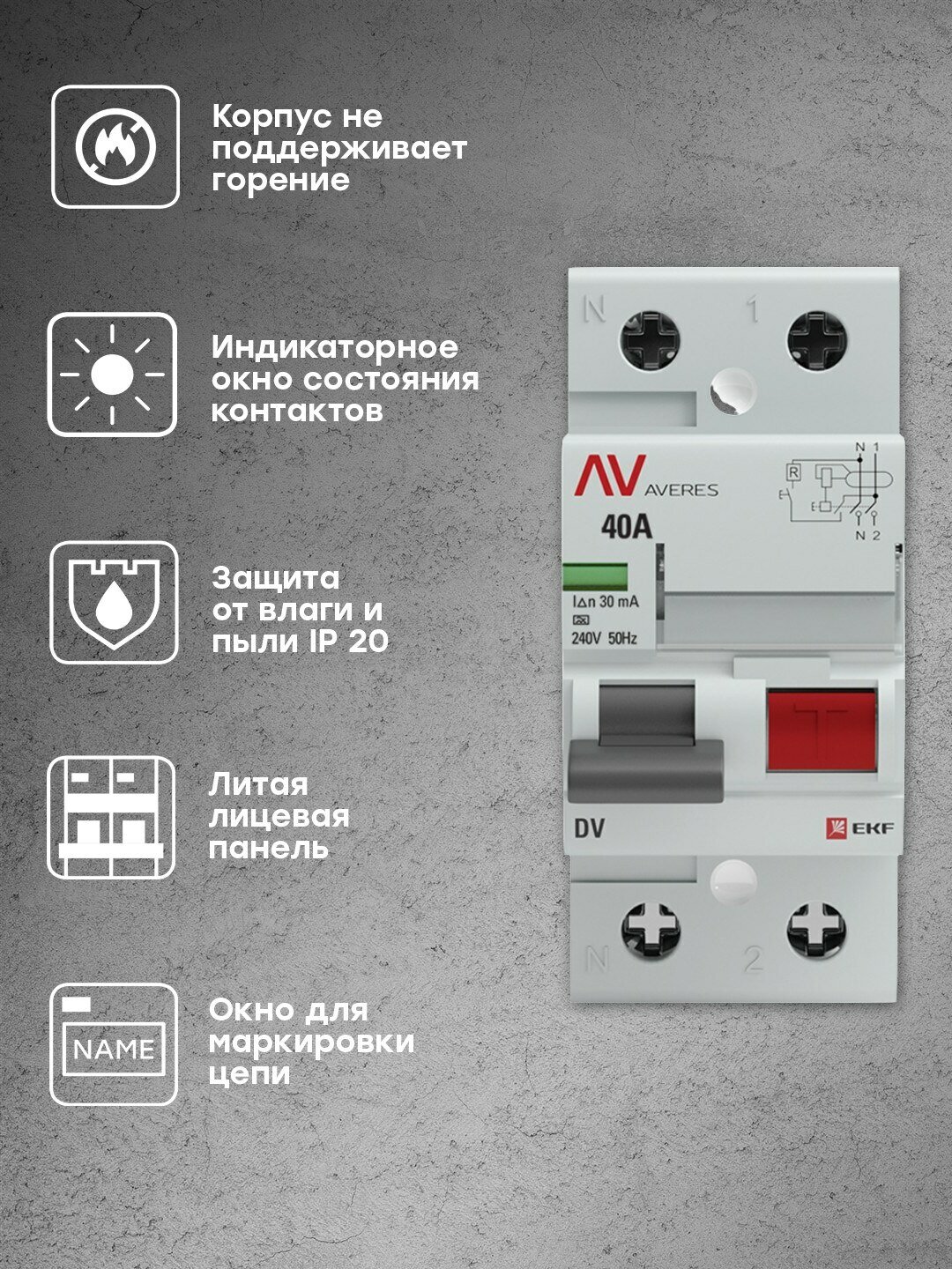Купить Устройство защитного отключения DV 2P 40А/30мА (A) AVERES , EKF RCCB-2-40-30-A-AV (1 шт.)
