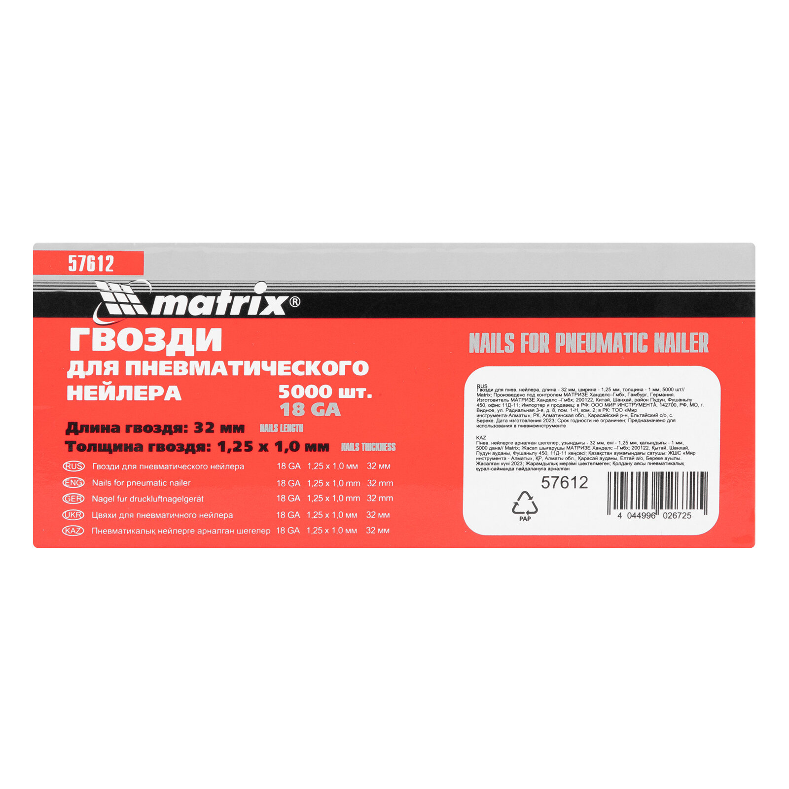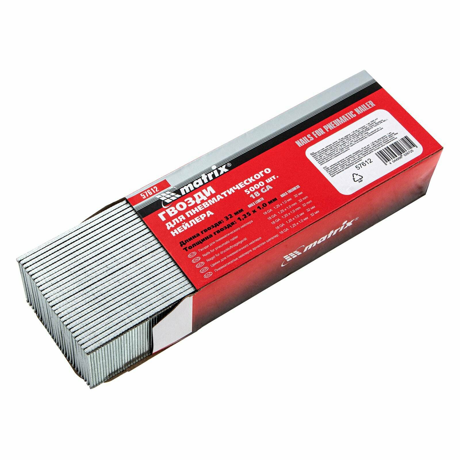 Купить Гвозди Matrix для пнев. нейлера длина - 32 мм, ширина - 1, 25 мм, толщина - 1 мм, 5000 шт 57612