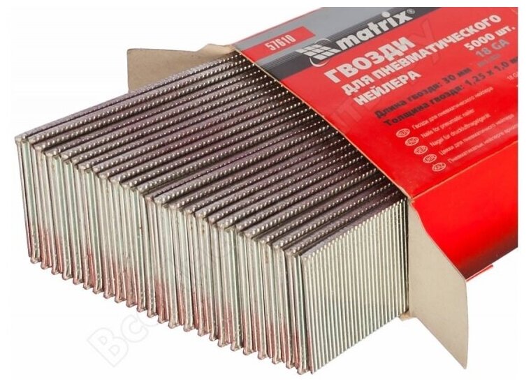 Гвозди Matrix для пнев. нейлера длина - 32 мм, ширина - 1, 25 мм, толщина - 1 мм, 5000 шт 57612 интересное: