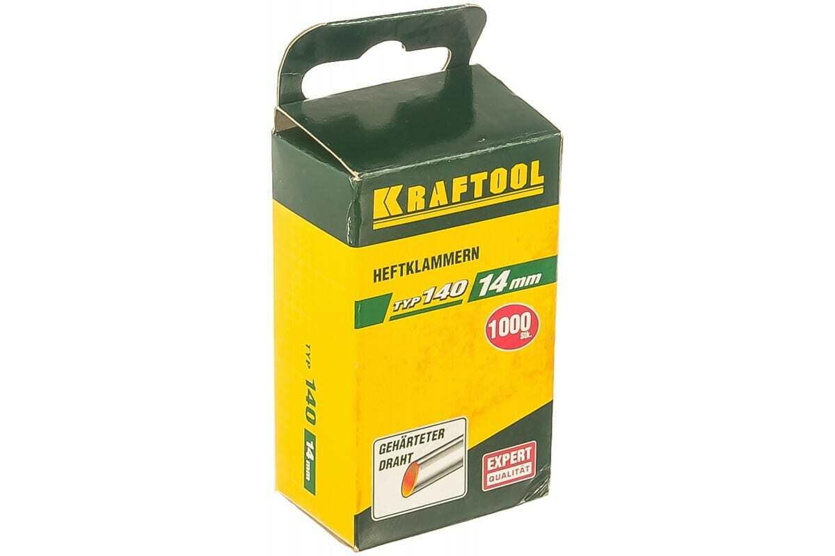 KRAFTOOL 14 мм скобы для степлера плоские тип 140 (G / 11 / 57), 1000 шт, супертвердые, 31680-14