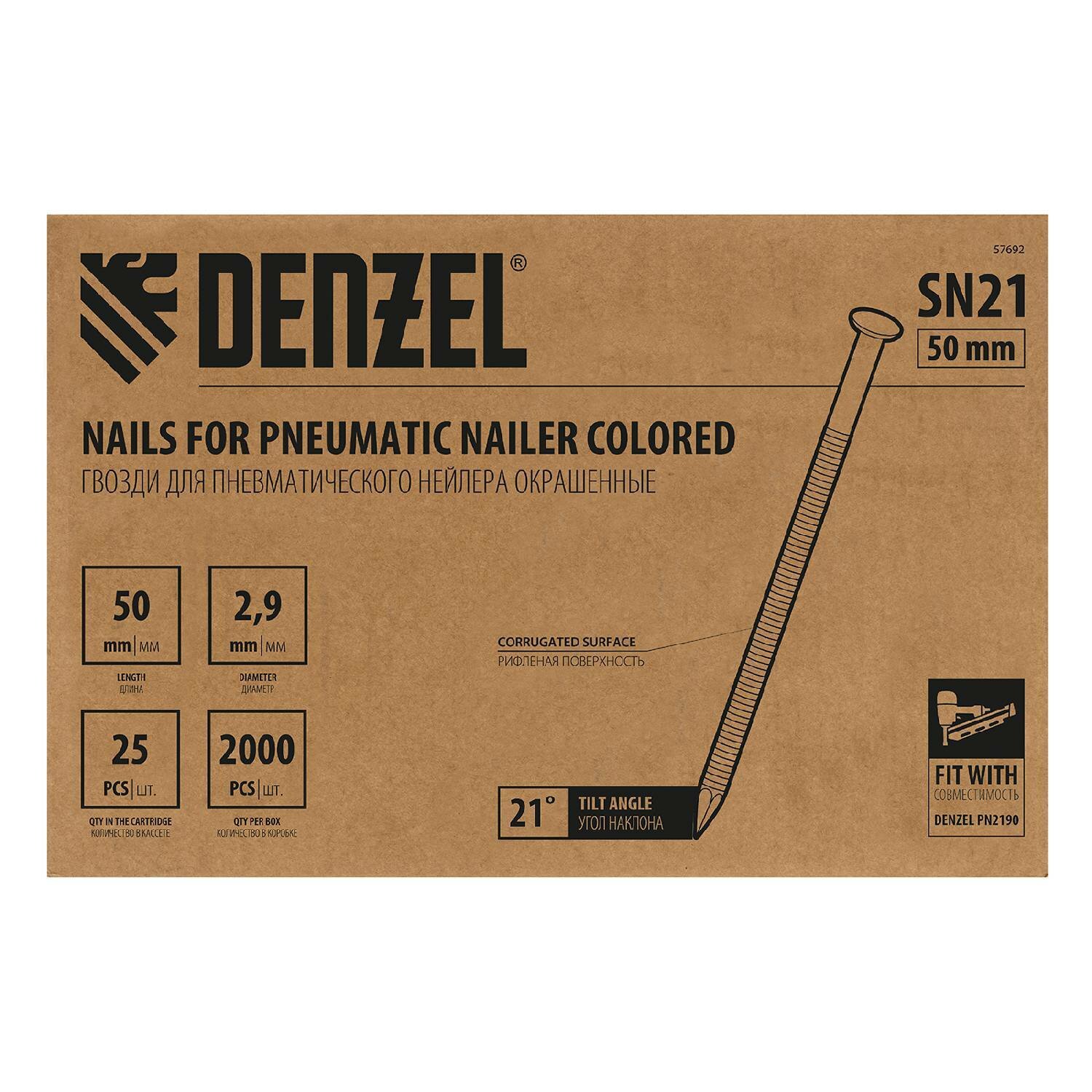Гвозди для пневматического нейлера Denzel (крашен.), длина - 50 мм, диам. - 2,9 мм, 2000 шт. 57692