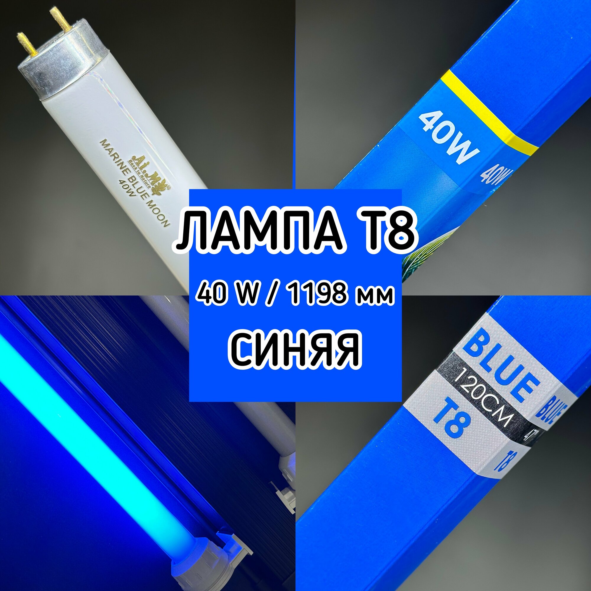 Лампа Т8 40W (1200 мм) Marine Blue Moon синяя / лампа для красоты аквариума, растений, морская, псевдо моря, люминисцентная