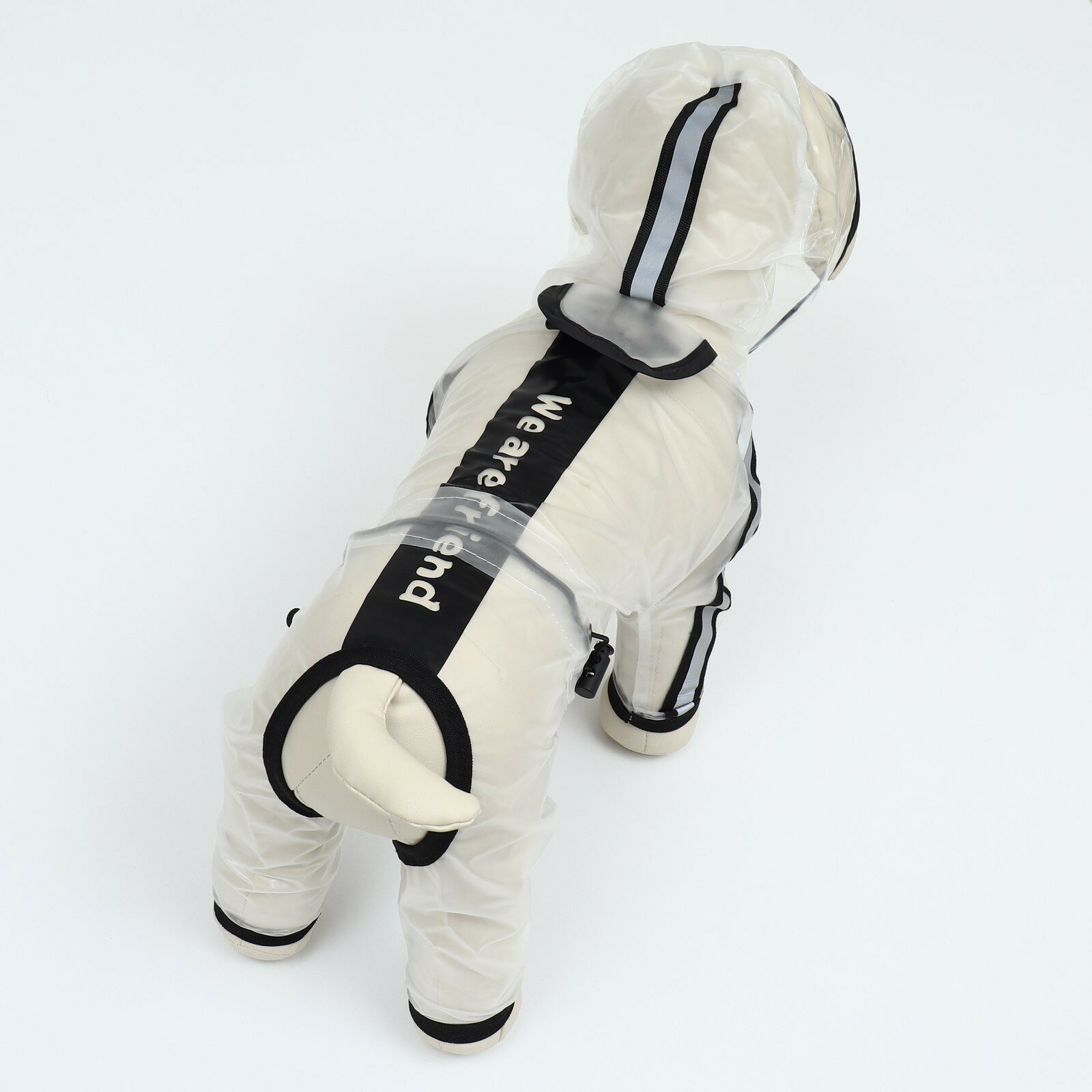 Дождевик-комбинезон для собак, р-р 3ХL (ДС 46, ОГ 71,5, ОШ 51 см, вес 20-26 кг), прозрачный