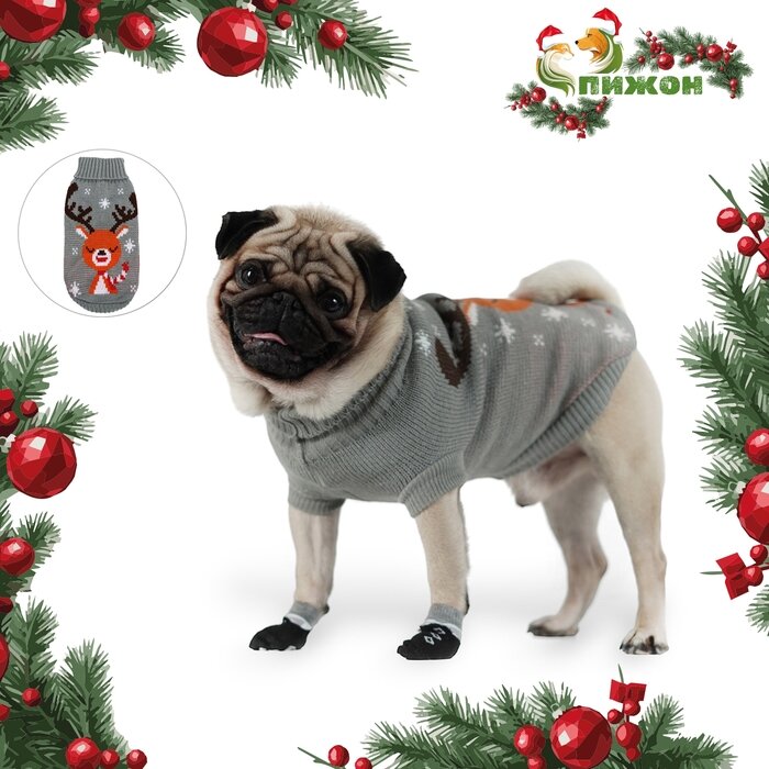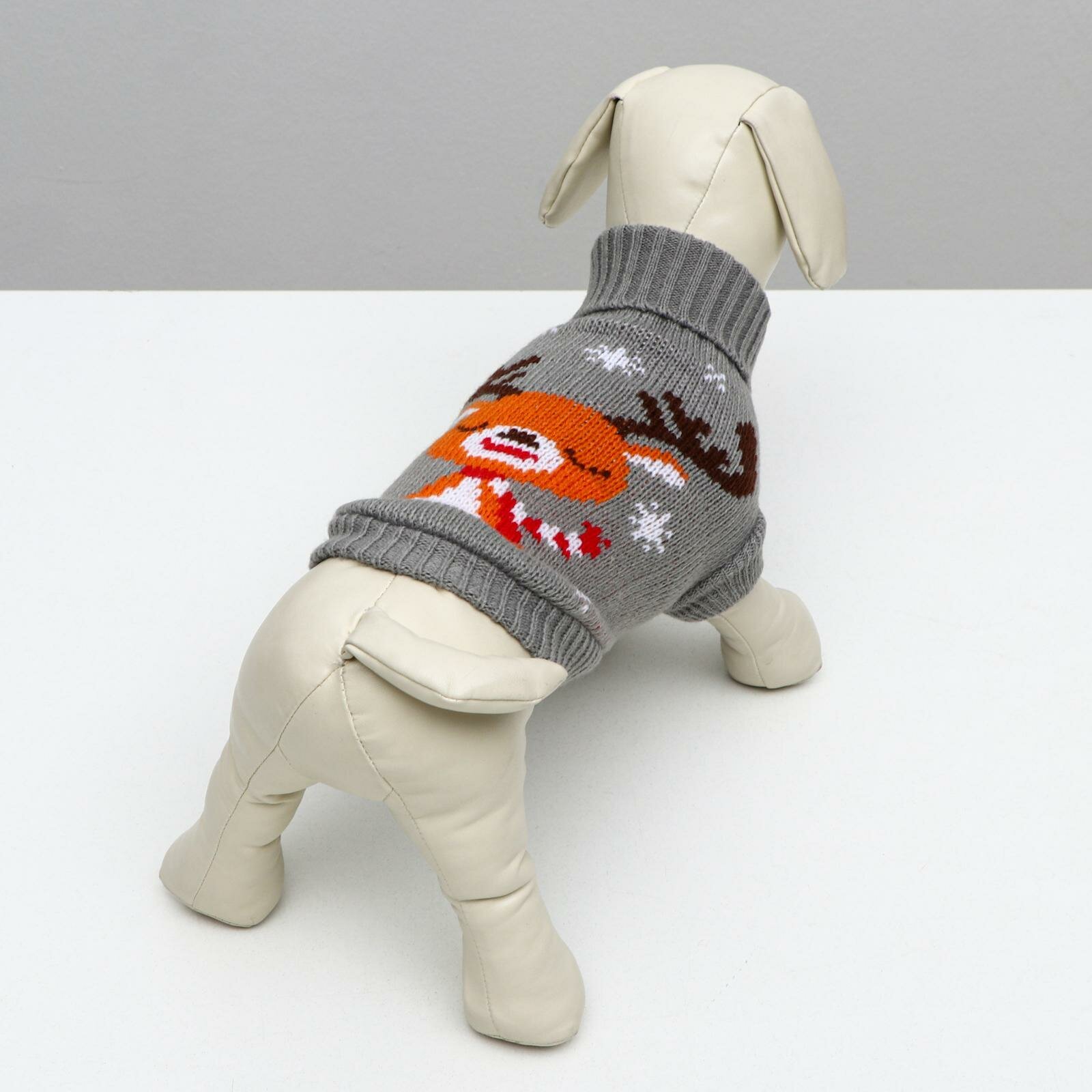Свитер "Олень на сером", XS (ДС 17, ОШ 17, ОГ 23-37 см) 5152042