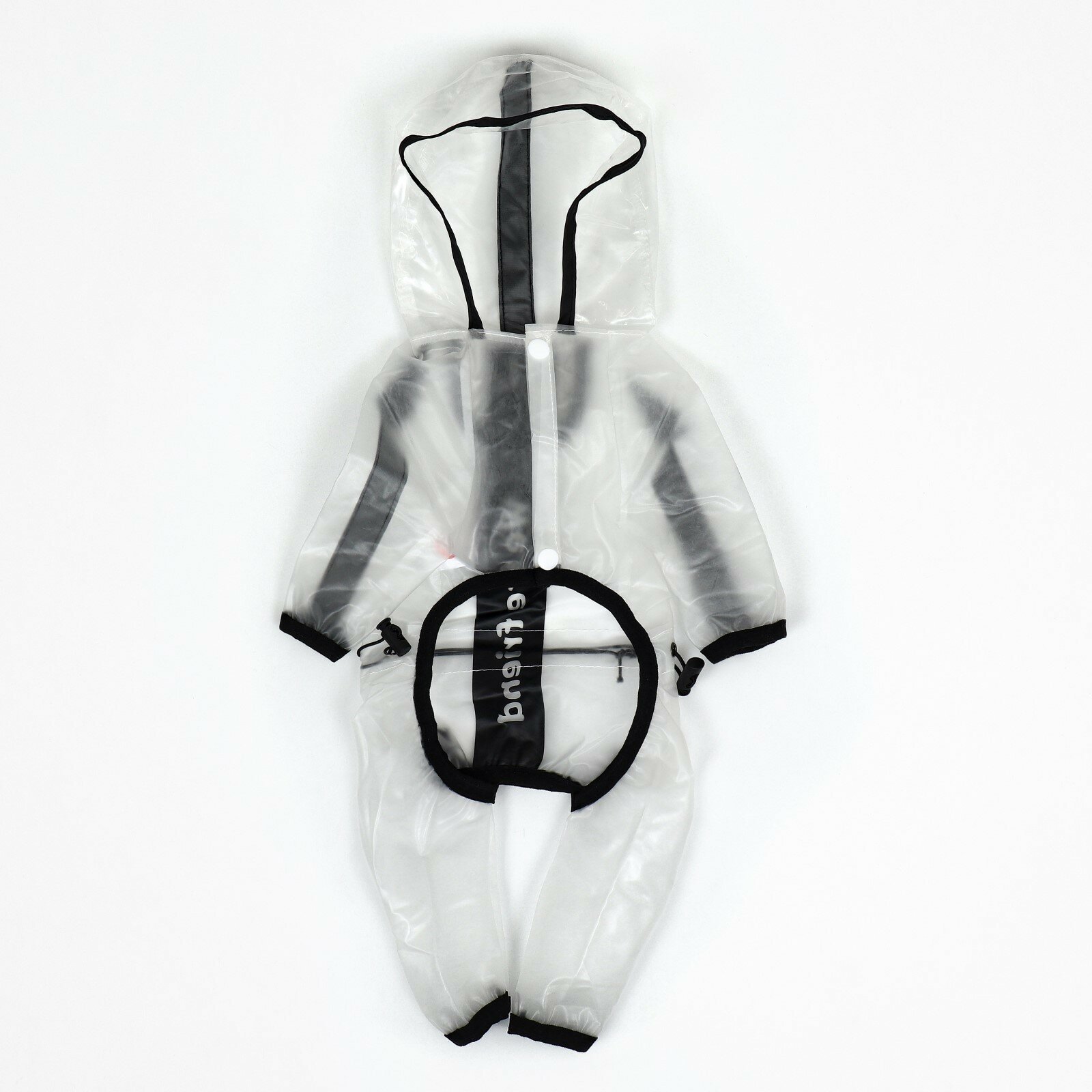 Дождевик-комбинезон для собак, р-р 3ХL (ДС 46, ОГ 71,5, ОШ 51 см, вес 20-26 кг), прозрачный