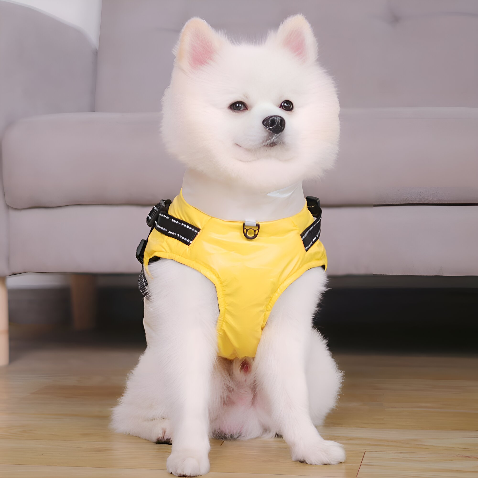 Одежда для собак мелких пород, жилет утепленный, серебристый/желтый, S