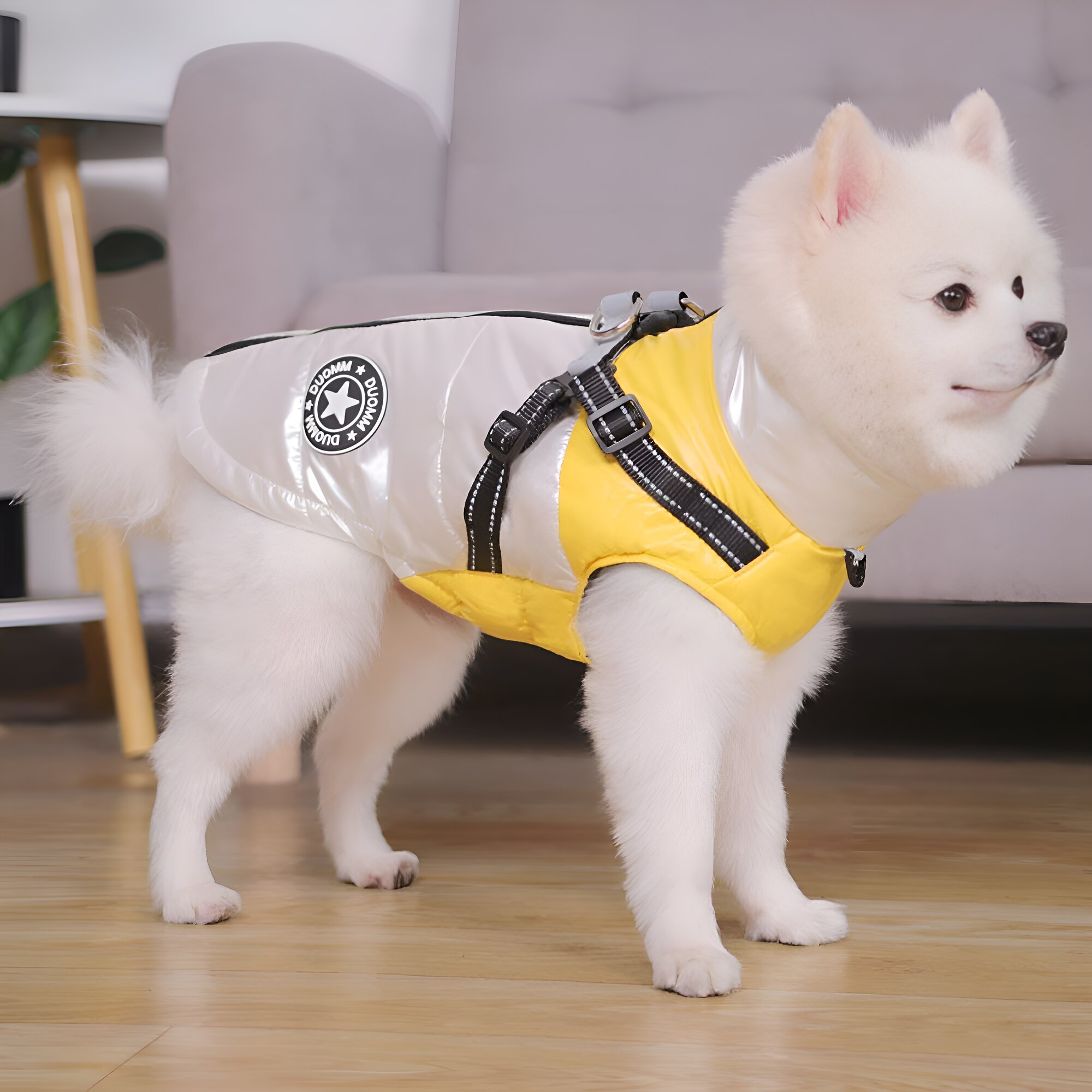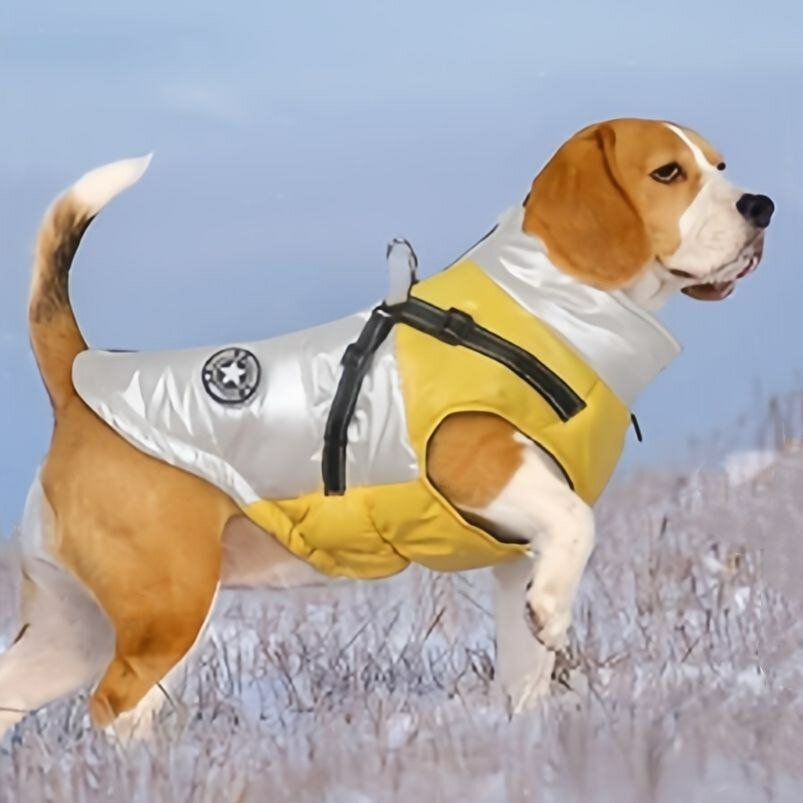 Жилетка зимняя для собак мелких пород влагостойкая, серебристый/желтый, M