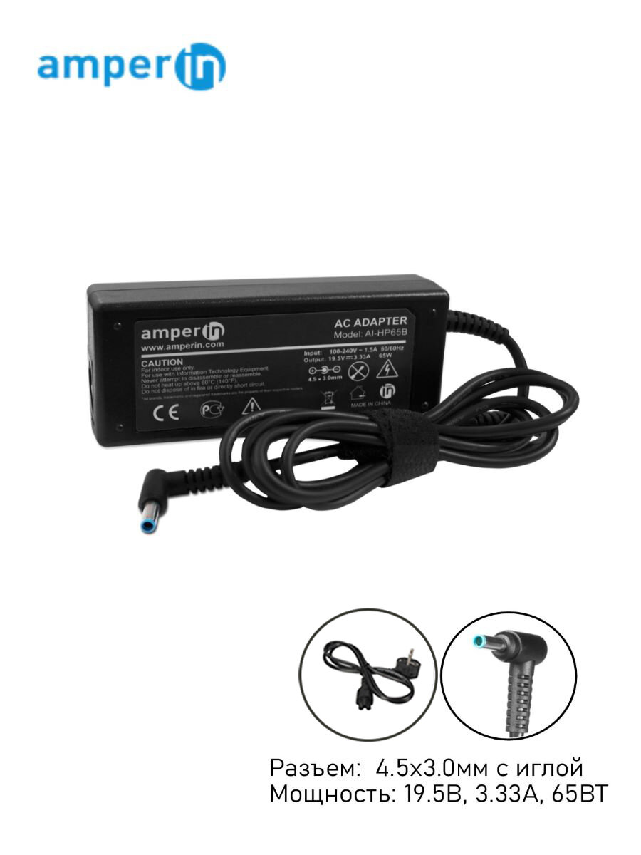 | Совместимые модели | Блок питания (сетевой адаптер) Amperin AI-HP65B для ноутбуков HP Envy 15 19.5V 3.33A 65W (4.5х3.0mm) |