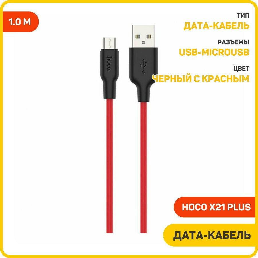 Кабель Hoco X21 Plus Micro, 2.4А 1 м, черный с красным
