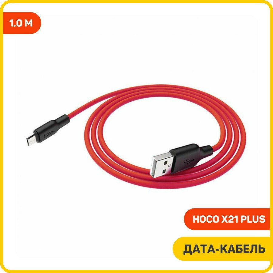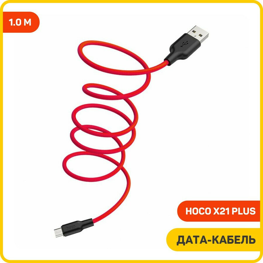 USB кабель Hoco X21 Plus Silicon Micro, 1 м, черный с красным
