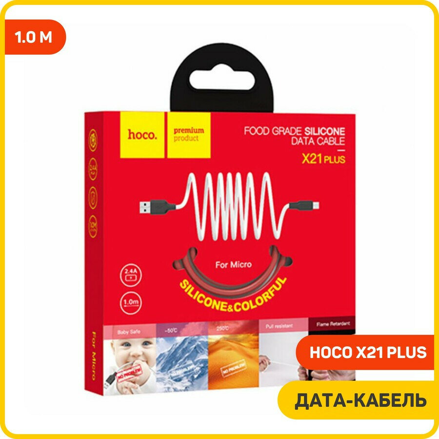 Купить USB Кабель Micro, HOCO, X21 Plus, силиконовый, черно-красный
