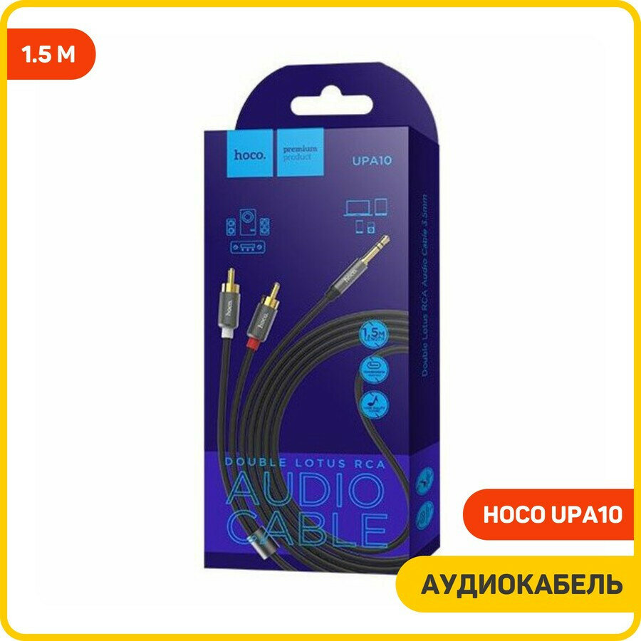 Кабель Hoco UPA10 Jack 3,5mm(m) - 2xRCA(m), 1.5 м, 1 шт., черный