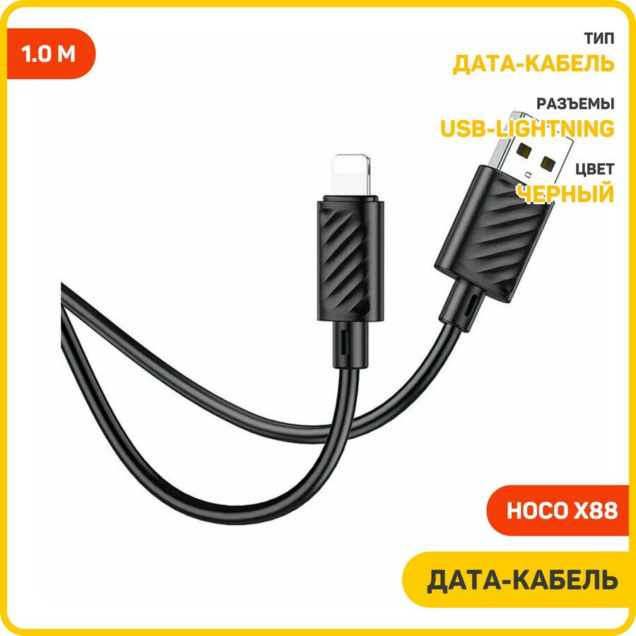 Кабель USB - Lightning Apple 8-pin Hoco X88 Gratified, 1 м, чёрный