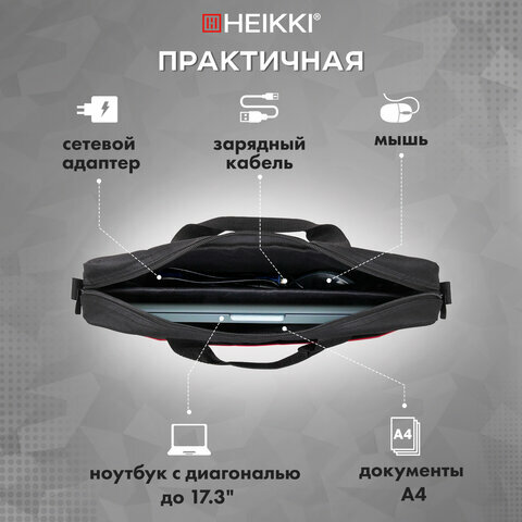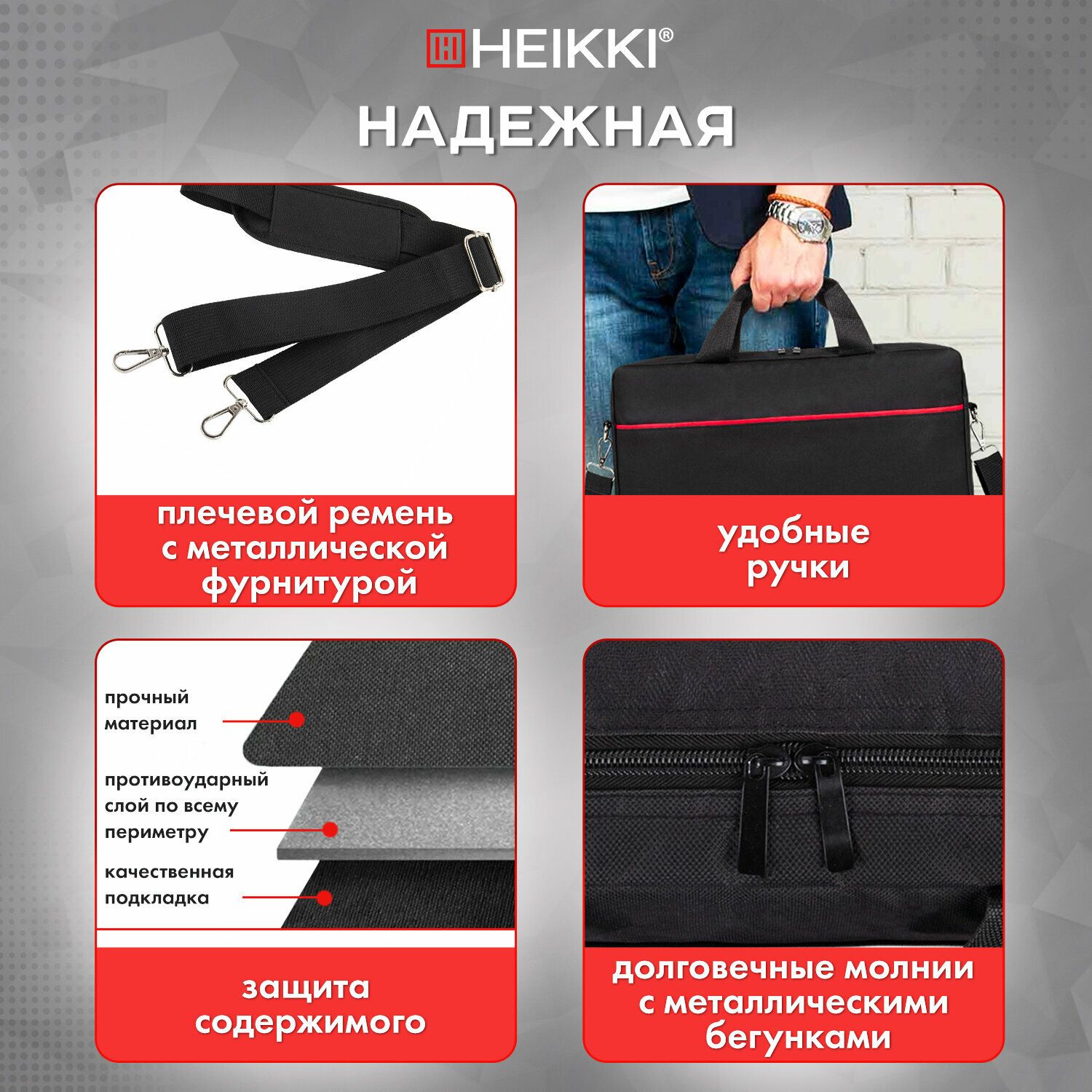 Сумка портфель HEIKKI MAXIMUM (хейки) с отделением для ноутбука 17,3", черная с красной вставкой, 34х44х6 см, 272591, 1шт в компл.