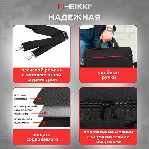 Купить Сумка портфель Heikki Сумка портфель MAXIMUM (хейки) с отделением для ноутбука 17,3", черная с красной вставкой, 34х44х6 см, 272591