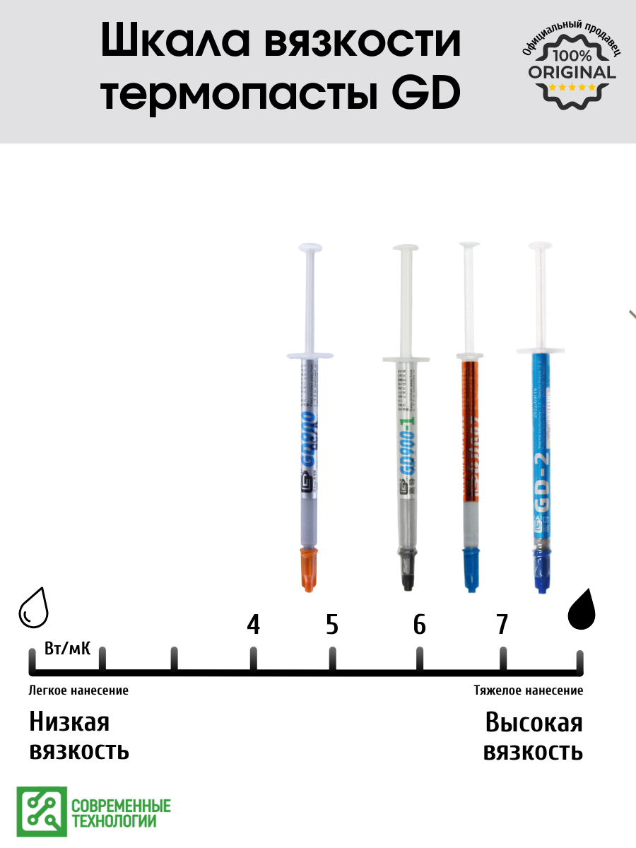 Термопаста GD900-1 в шприце 7 грамм для процессора ноутбука компьютера, теплопроводность 6,0 Вт/мК